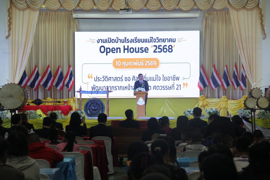 วันอังคารที่ 10 กุมภาพันธ์ 2569 นายภักดี ศรีโพธิ์ ผู้อำนวยการโรงเรียนแม่ใจวิทยาคม พร้อมกับผู้บริหาร และ คณะครู โรงเรียนแม่ใจวิทยาคม ให้การต้อนรับ นายอภิวัฒน์ กันศรีเวียง ศึกษาธิการจังหวัดพะเยา และ นายธงชัย จันแย้ ผู้อำนวยการสำนักงานเขตพื้นที่การศึกษามัธยมศึกษาพะเยา ประธานกล่าวเปิดกิจกรรม Open House 2568 เปิดบ้านวิชาการ ประจำปีการศึกษา 2568 “ประวัติศาสตร์ ซอ ศิลป์ ถิ่นแม่ใจ ใยอาชีพ พัฒนาจากรากเหง้าสู่อนาคต ศตวรรษที่ 21” ณ หอประชุม 50 ปี โรงเรียนแม่ใจวิทยาคม