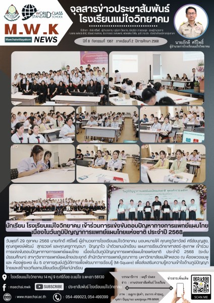 วันศุกร์ ที่ 13 ตุลาคม 2566 นายภักดี ศรีโพธิ์ ผู้อำนวยการโรงเรียนแม่ใจวิทยาคม พร้อมด้วยนางสุนันทา ไชยบาล รองผู้อำนวยการและคณะครู ร่วมกิจกรรมเนื่องในวันนวมินทรมหาราช สวดพระพุทธมนต์และทำบุญตักบาตรถวายพระราชกุศล และพิธีวางพวงมาลา โดยมีนายพีรัช จันธิมา นายอำเภอแม่ใจ เป็นประธานในพิธี ณ หอประชุมที่ว่าการอำเภอแม่ใจ