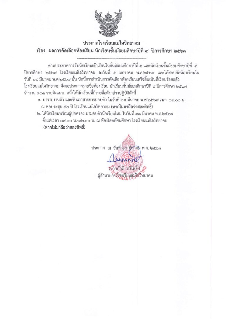 ประกาศ/ประชาสัมพันธ์ ประกาศ!!! ผลการคัดเลือกห้องเรียน นักเรียนชั้นมัธยมศึกษาปีที่ 4 ปีการศึกษา 256726/03/202426/03/2024
