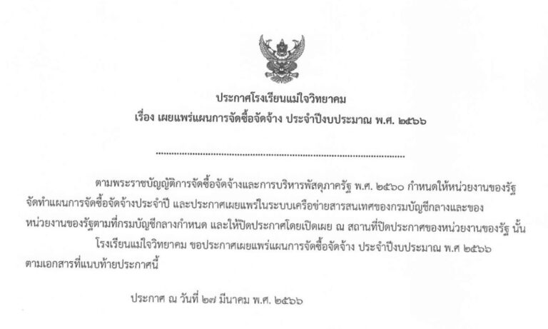 ประกาศ/ประชาสัมพันธ์ ประกาศเรื่อง เผยแพร่แผนการจัดซื้อจัดจ้าง ประจำปีงบประมาณ พ.ศ. 256627/03/202328/10/2023