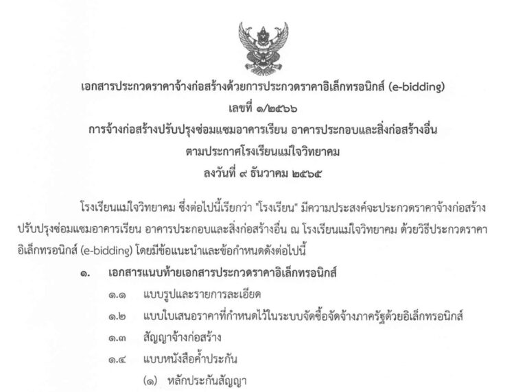 ประกาศ/ประชาสัมพันธ์ ประกาศประกวดราคาจ้างก่อสร้างปรับปรุงซ่อมแซมอาคารเรียน (e-bidding)09/12/202228/10/2023